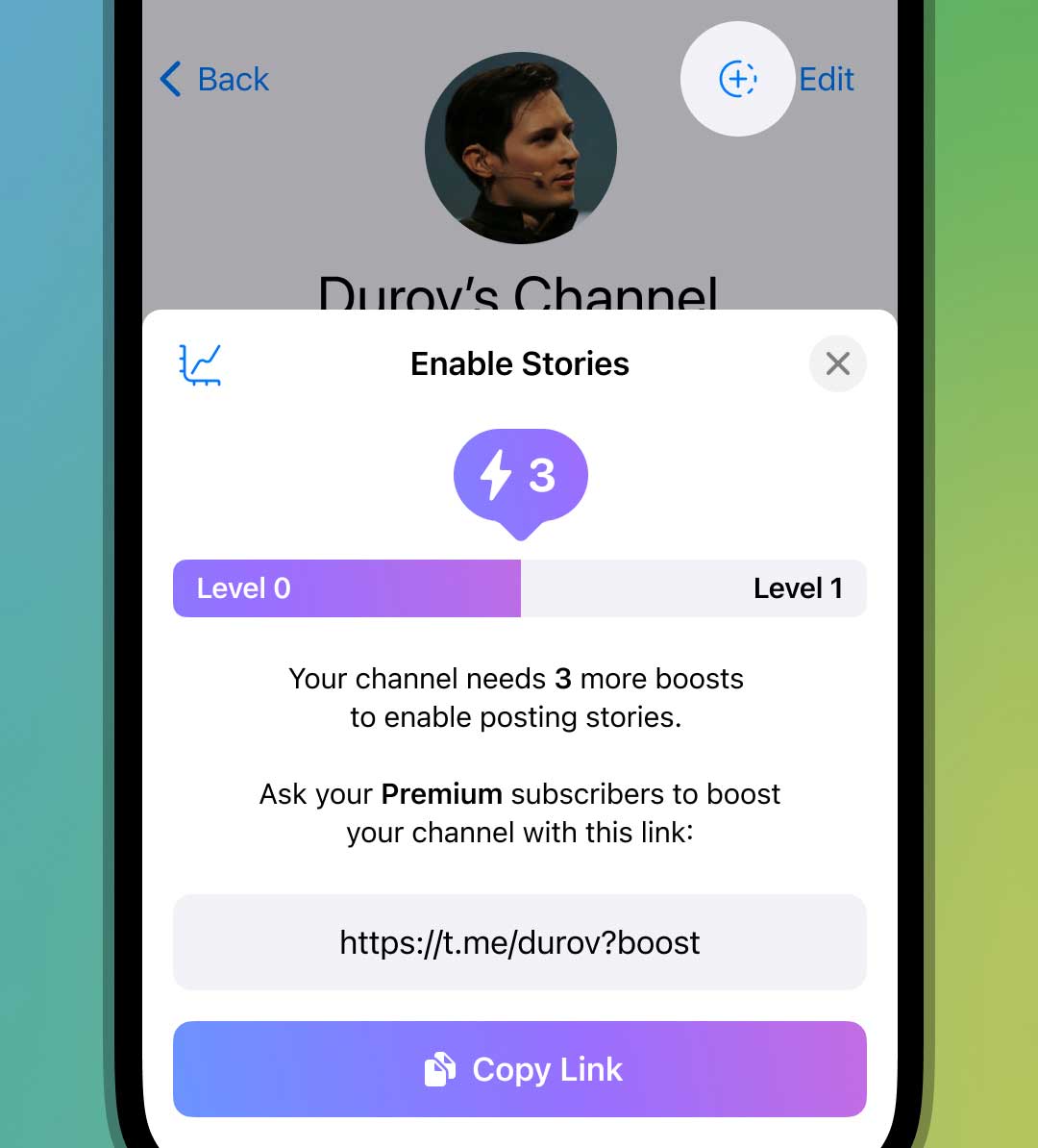 Channels level up as they gain more boosts – and for each level, they can post 1 additional story per day to their subscribers' story feeds. Once more, Telegram users are in control: choosing which channel admins may spam them with food photos – and even the number of meals per day!