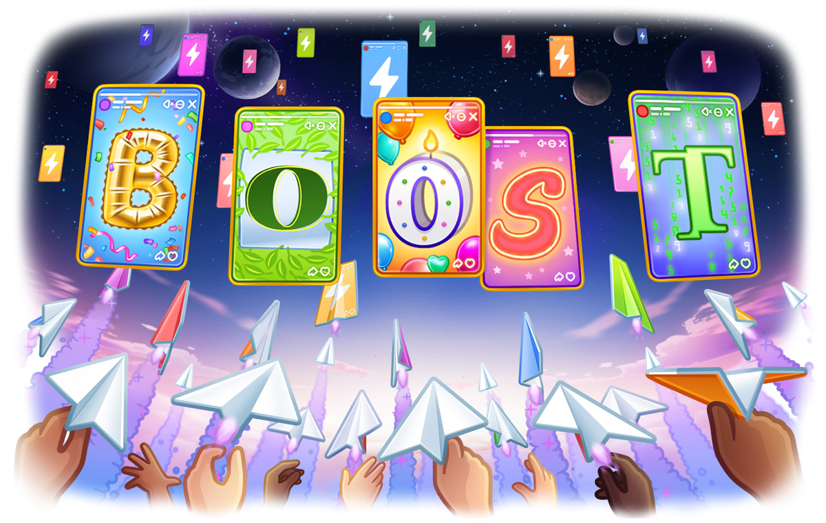 Channels can ask subscribers for boosts using a special link like t.me/durov?boost (a teaser-trailer won't hurt either). To get the boost link for your channel and see how many you need to level up, go to Channel Info > More > Statistics > Boosts. Getting to level 10 gives your channel +15 resistance to trolls and unlocks unique admin skins.