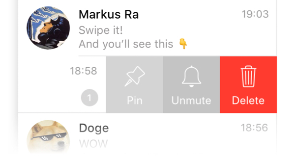 You can now use swipe gestures to navigate the interfaces on Telegram for macOS. Most notably, you can swipe to reply and the chats list now works the same way it does on iOS: swipe right to Mark as Read/Unread, and left to Pin, Mute or Delete.